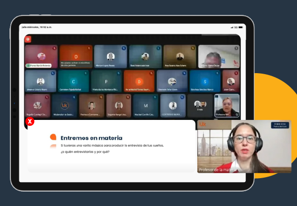Además, tendrás clases en vivo todas las semanas, donde podrás interactuar con profesores y compañeros. Durante estas sesiones, podrás debatir sobre temas de interés para la clase, como la gestión de riesgos financieros, el impacto de la inteligencia artificial en contabilidad y la importancia de la ética profesional.